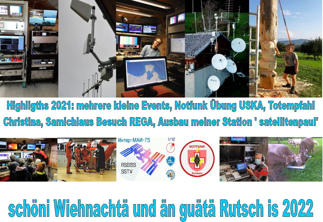 Dazu kommen der Empfang des Reuter Video Service, Helikopter und Flugzeugdaten, welche ich ins internationale Netz einspeise. Meine Amateur Funkanlage ist auf dem modernsten Stand. Auch die Daten Übermittlung zur ISS funktioniert super. Auch überraschte ich bereits das 8. mal als Schmutzli die REGA-7 Crew.